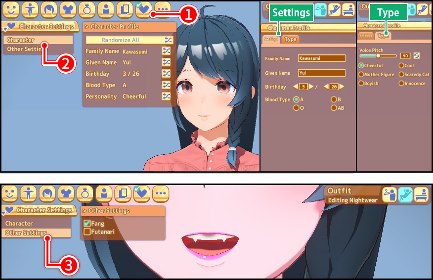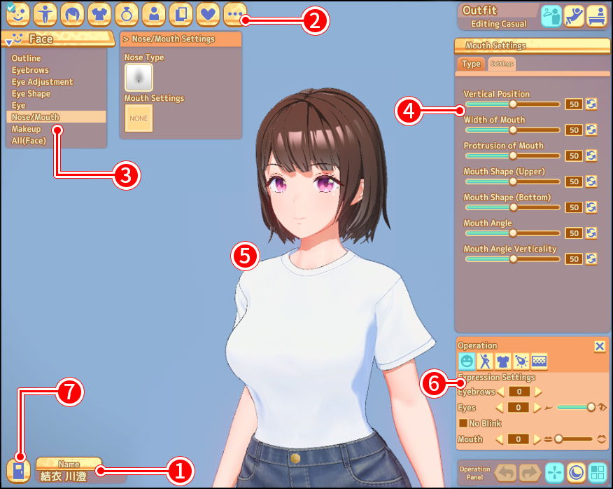 •Eyes Track Camera (Char 2)Adjusts the direction NPC 2's eyes are looking.