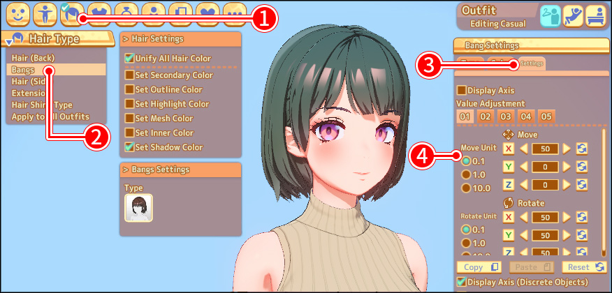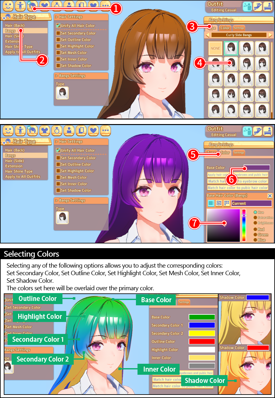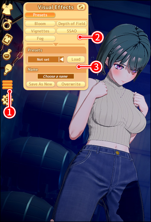 ② Visual Effect MenuA menu that controls various visual options. (Connects to ③)