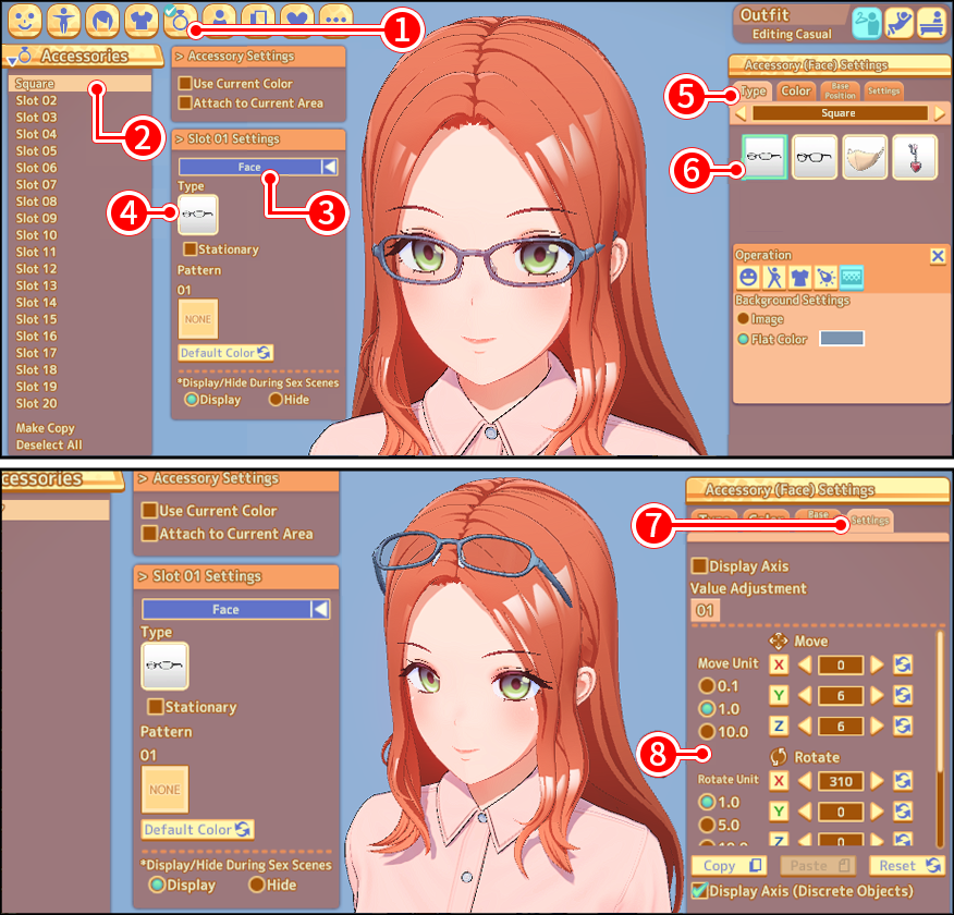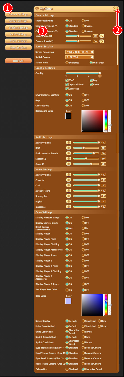 •Reset Camera DeterminationEnabling this automatically sets the camera to a predetermined angle when changing sex positions.