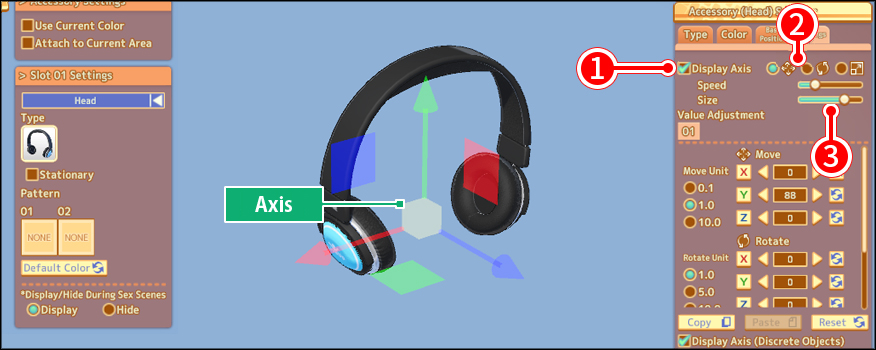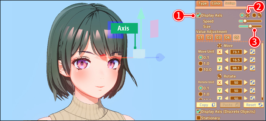 - ③ Movement ControlsLeft-click and drag on each icon to move/rotate.