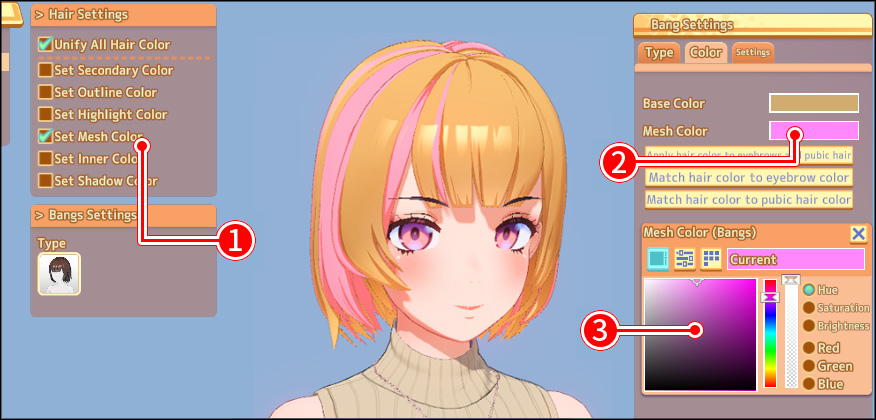 ① Toggle Visual SettingsSelecting this opens a menu to customize visual settings.